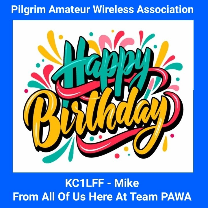 By adminNovember 15, 20241 comment From Our PAWA Club Officers And Members Happy Birthday to team member KC1LFF, Mike, have a great day my friend Talk to you soon Mike – N1NTM Pilgrim Amateur Wireless Association